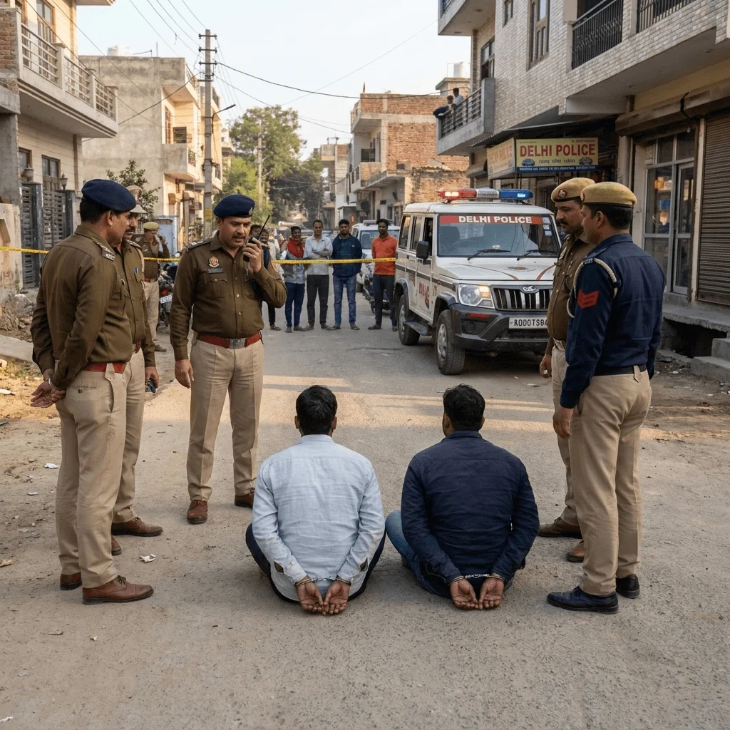 पुलिस ने Urban Extension Road (UER) के पास सुबह करीब 5:35 बजे घेराबंदी कर दो बदमाशों को पकड़ा। गिरफ्तार आरोपियों की पहचान 22 साल के Rocky और 24 साल के Sumit उर्फ Koki के रूप में हुई है। ये दोनों Lagarpuria गैंग से जुड़े बताए जा रहे हैं। गिरफ्तारी के दौरान Rocky ने पुलिस टीम पर तीन राउंड फायरिंग की, जिसमें से एक गोली हेड कांस्टेबल Manish की बुलेटप्रूफ जैकेट पर लगी। पुलिस ने जवाबी कार्रवाई में Rocky के बाएं घुटने के नीचे गोली मारी, जिसके बाद दोनों को काबू कर लिया गया।