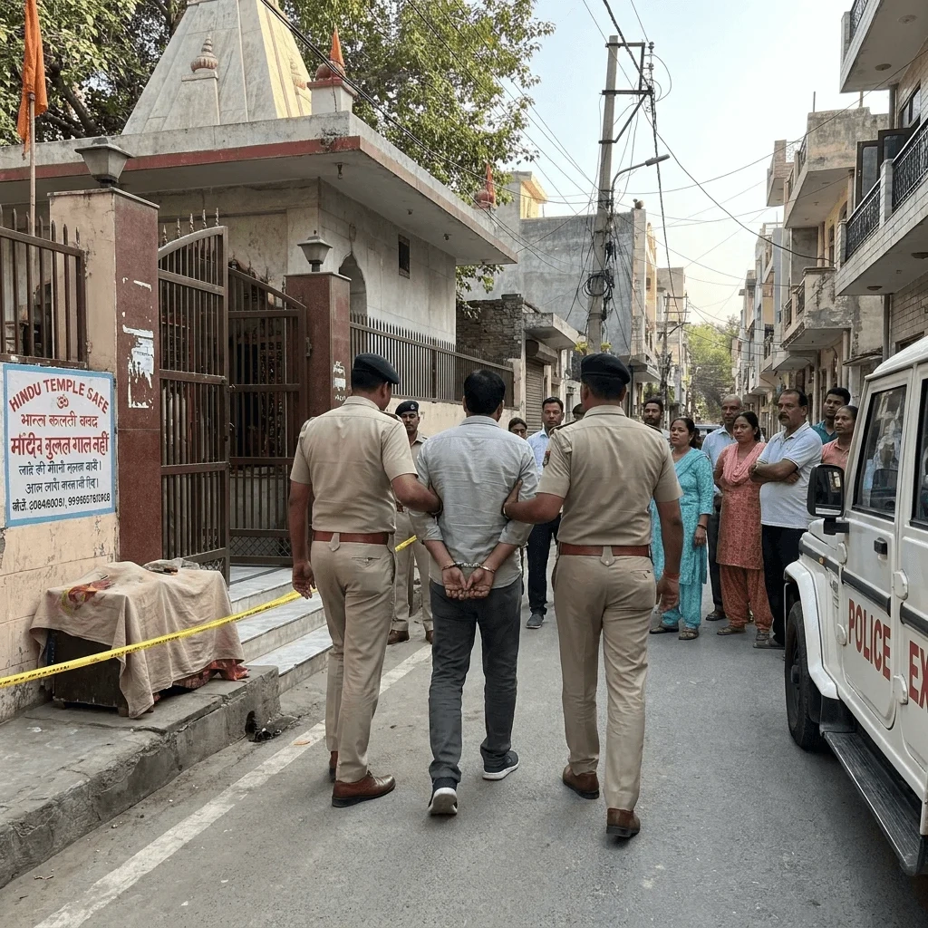 पुलिस के मुताबिक, इस घटना की जानकारी 15 अप्रैल 2026 को मिली थी। दयालपुर इलाके के एक मंदिर, जिसे कुछ सूत्रों में राधा कृष्ण मंदिर बताया गया है, के मुख्य द्वार पर किसी ने आपत्तिजनक सामग्री रख दी थी। सूचना मिलते ही पुलिस ने तुरंत कार्रवाई शुरू की और प्राथमिकी (FIR) दर्ज की। 19 अप्रैल तक पुलिस ने एक व्यक्ति को पकड़ लिया है, हालांकि उसकी पहचान अभी गुप्त रखी गई है।