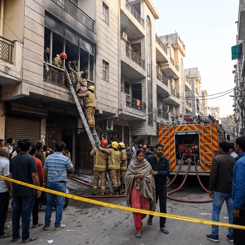 Delhi : दिल्ली के East Patel Nagar इलाके में मंगलवार दोपहर एक रिहायशी इमारत में आग लगने से हड़कंप मच गया। दोपहर करीब 12:10 बजे लगी इस आग ने ग्राउंड फ्लोर पर लगे बिजली के मीटरों को अपनी चपेट में ले लिया। दिल्ली फायर सर्विस की टीम ने तुरंत मौके पर पहुंचकर इमारत में फंसे 13 लोगों को सुरक्षित बाहर निकाल लिया है, जिसमें महिलाएं और बच्चे भी शामिल थे।