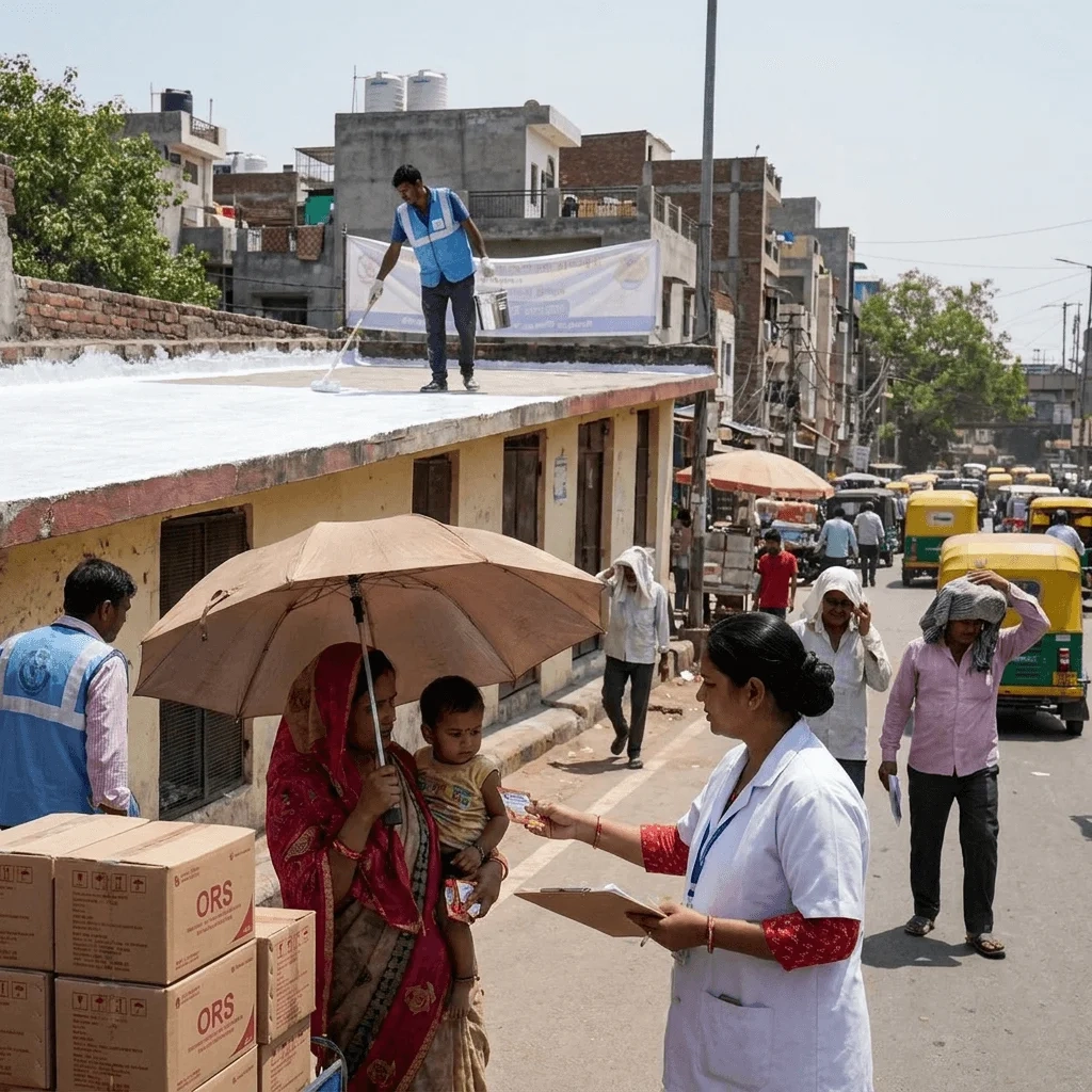मुख्य उपायों में कूल रूफिंग नीति, बस स्टॉप पर पानी का छिड़काव और स्कूली बच्चों के लिए ORS उपलब्ध कराना शामिल है।