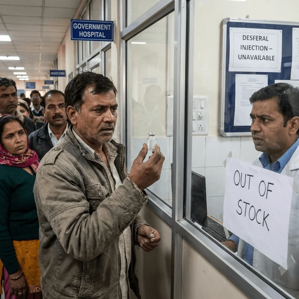 NLEM 2022 के नियमों के मुताबिक Desferal एक जरूरी दवा है और सरकारी अस्पतालों में मुफ्त मिलनी चाहिए। साथ ही RPWD एक्ट 2016 के तहत थैलेसीमिया मरीजों को प्राथमिकता पर इलाज मिलना चाहिए। लेकिन जमीनी हकीकत अलग है: