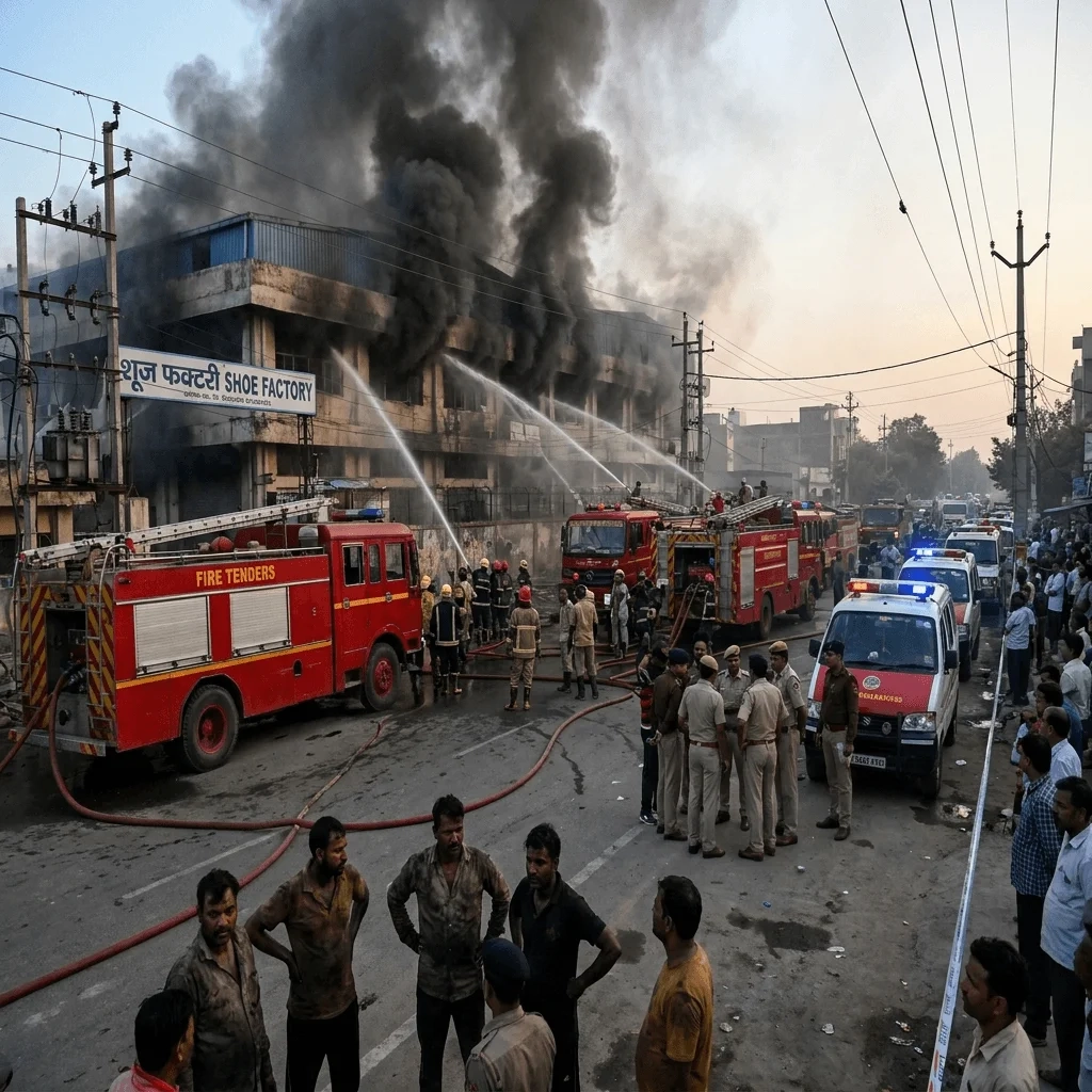 यह घटना 17 अप्रैल 2026 को सुबह करीब 7:45 बजे की है। यह फैक्ट्री दो मंजिला थी जिसमें बेसमेंट भी था। यहाँ जूतों के सोल और अन्य सामान बनाए जाते थे। फैक्ट्री के सभी फ्लोर पर कच्चा माल, तैयार जूते, मशीनें और पैकिंग का सामान भरा हुआ था। रबड़, फोम और गोंद जैसे ज्वलनशील सामान होने की वजह से आग तेजी से फैली और घना धुआं छा गया, जिससे बचाव कार्य में काफी दिक्कत आई।