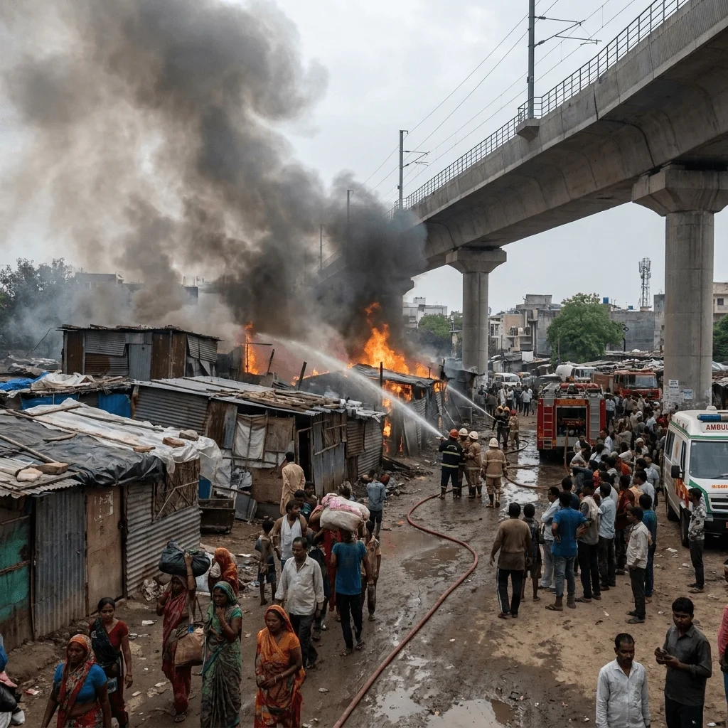 Haryana : गुरुग्राम के साइबर सिटी इलाके में स्थित सिकंदरपुर Metro Station के पास एक झुग्गी बस्ती में भीषण आग लग गई। यह हादसा 25 अप्रैल 2026 की शाम को ऑफिस से घर लौटने वाले भीड़भाड़ के समय हुआ। आग इतनी भयानक थी कि इसकी लप