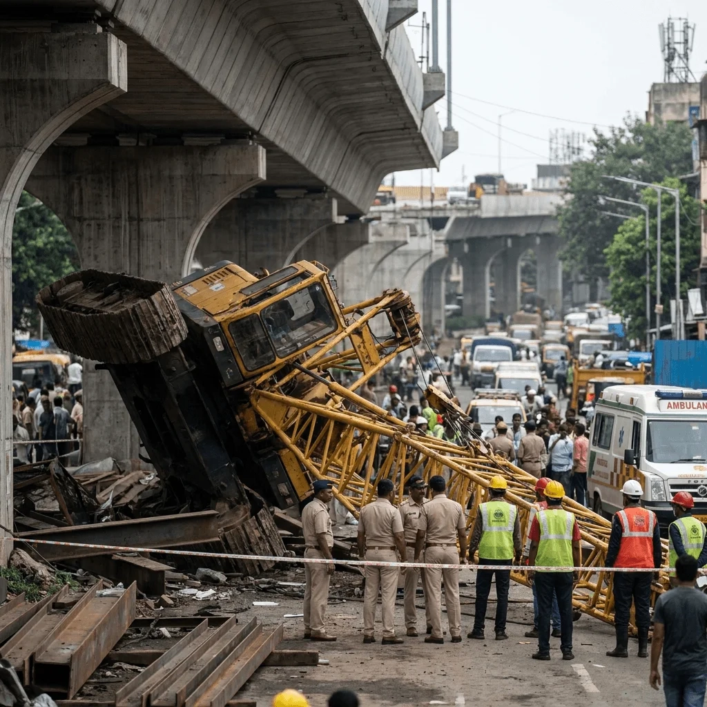 पुलिस ने SFAR Infratech और Lifting and Lashing Solution India कंपनी के मालिकों, इंजीनियरों और मशीन ऑपरेटर के खिलाफ लापरवाही के आरोप में FIR दर्ज की है।