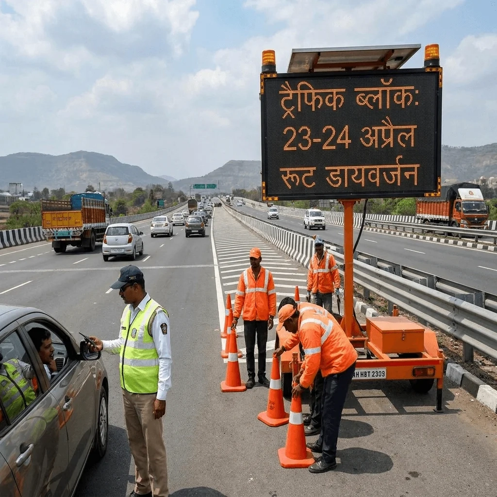 - 24 अप्रैल (पुणे जाने वाले): दोपहर 12 से 3 बजे तक मुंबई से पुणे जाने वाला ट्रैफिक बंद रहेगा. गाड़ियां कुसगाँव टोल प्लाजा से NH 48 की ओर मुड़ेंगी और देहु रोड-किवाले होते हुए पुणे पहुँचेंगी.