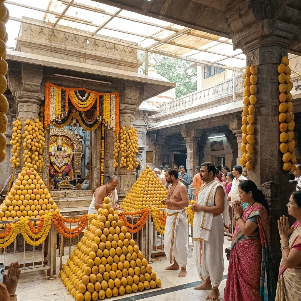 मुंबई के ऐतिहासिक Shri Mumbadevi Temple में हर साल की तरह इस बार भी ‘आम महोत्सव’ मनाया गया। यहाँ मंदिर को 12,000 से ज्यादा आमों और फूलों से सजाया गया। मंदिर के पुजारी संदीप भट्ट ने बताया कि अक्षय तृतीया पर अच्छे काम करने का फल सबसे बड़ा होता है और आमों से सजावट यहाँ की पुरानी परंपरा है।