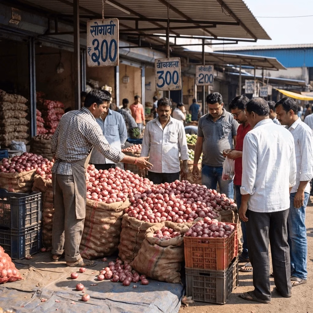 Maharashtra: नवी मुंबई की APMC वाशी मंडी में प्याज की थोक कीमतों में भारी गिरावट आई है। शनिवार को प्याज के दाम गिरकर 8 से 12 रुपये प्रति किलो तक पहुंच गए। बाजार में प्याज की भारी आवक और विदेशों में कम मांग की वजह से कीमतों में यह कमी आई है, जिससे आम खरीदारों को राहत मिल सकती है लेकिन किसानों की चिंता बढ़ गई है।