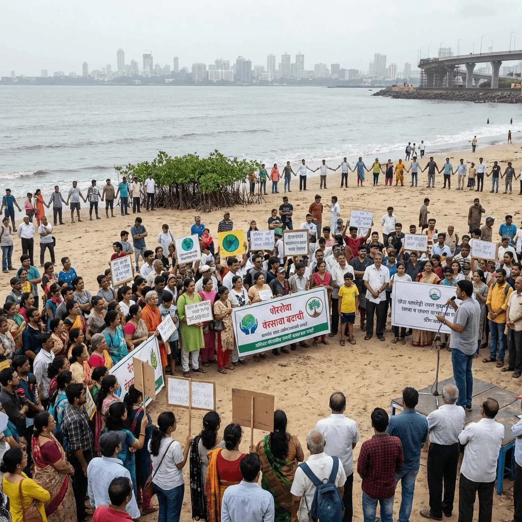 Maharashtra: मुंबई के वर्सोवा बीच पर 12 अप्रैल को करीब 300 लोग पर्यावरण को बचाने के लिए इकट्ठा हुए। ‘Green Mumbai Sunday’ नाम के इस शांतिपूर्ण प्रदर्शन में लोगों ने मैंग्रोव और शहर के हरे-भरे इलाकों को बचाने