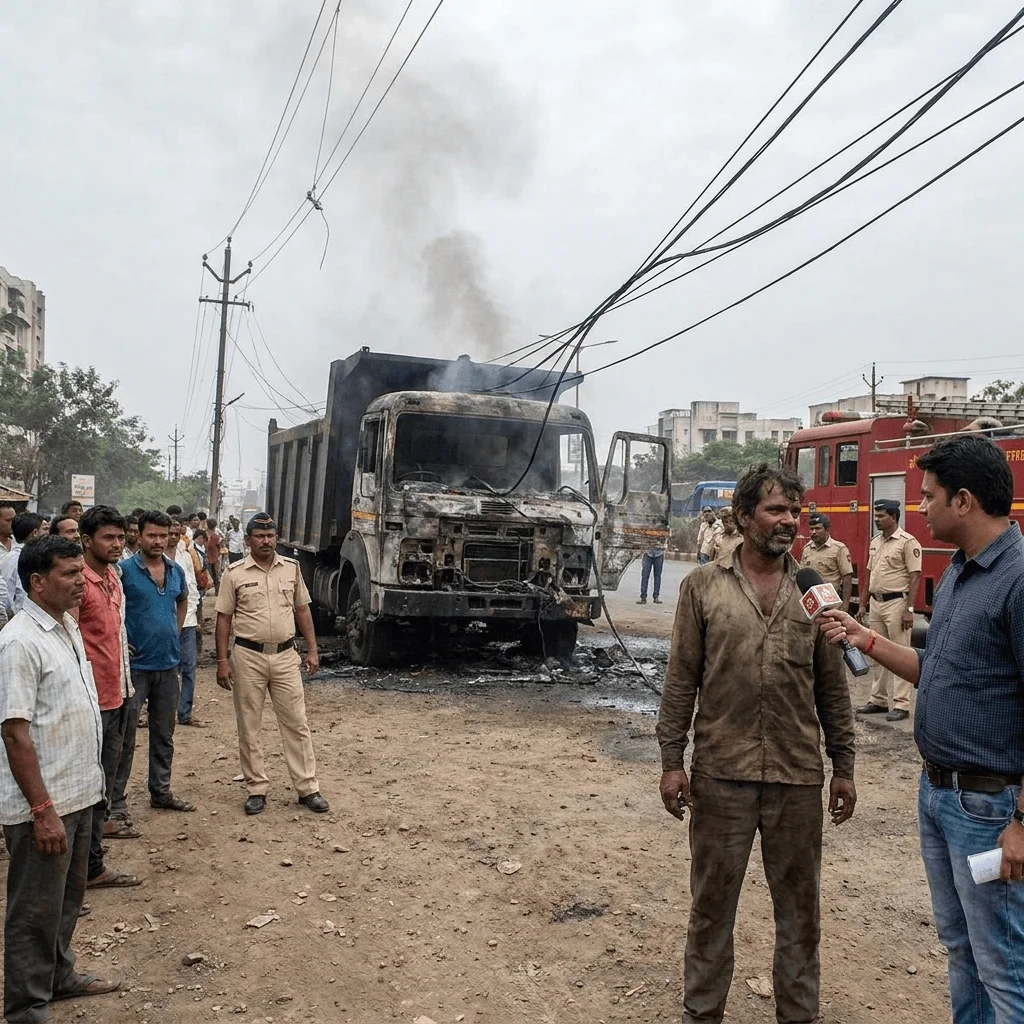 यह घटना खलापुर पुलिस स्टेशन के अधिकार क्षेत्र में आने वाले वडवल इलाके की है। बताया गया कि डंपर ड्राइवर मिट्टी अनलोड कर रहा था, तभी उसने डंपर बेड की ऊंचाई का सही अंदाजा नहीं लगाया। जैसे ही बेड ऊपर उठा, वह सीधे बिजली के लाइव तार से टकरा गया। इस वजह से डंपर में शॉर्ट सर्किट हुआ और आग लग गई। ड्राइवर हादसे के वक्त गाड़ी में अकेला था और वह तुरंत बाहर कूद गया, जिससे वह करंट की चपेट में आने से बच गया।