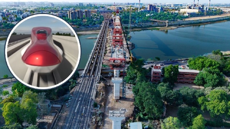Gujarat: मुंबई-अहमदाबाद बुलेट ट्रेन प्रोजेक्ट के तहत अहमदाबाद में साबरमती नदी पर पुल का काम तेजी से चल रहा है। NHSRCL इस पुल के निर्माण में तेजी ला रहा है ताकि प्रोजेक्ट समय पर पूरा हो सके। यह पुल करीब 36 मीटर ऊंचा होगा,
