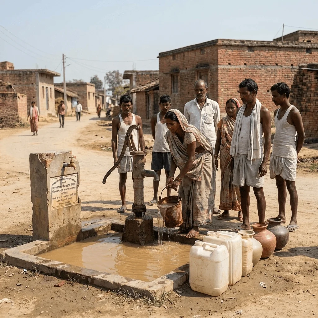 Bihar: औरंगाबाद जिले की महादलित बस्तियों में अप्रैल के महीने में ही भीषण जल संकट गहरा गया है। मदनपुर प्रखंड की महुआवा पंचायत के सांवा बिगहा गांव में हालात इतने खराब हैं कि करीब 400 की आबादी वाले इस इलाके में लोग बूंद-बूंद पानी के लिए तरस रहे हैं। चापाकल सूख चुके हैं और सरकारी नल-जल योजना के तहत बनी जल मीनार सिर्फ दिखावा बनकर रह गई है, जिससे लोगों को एक किलोमीटर दूर कुएं से गंदा पानी लाना पड़ रहा है।