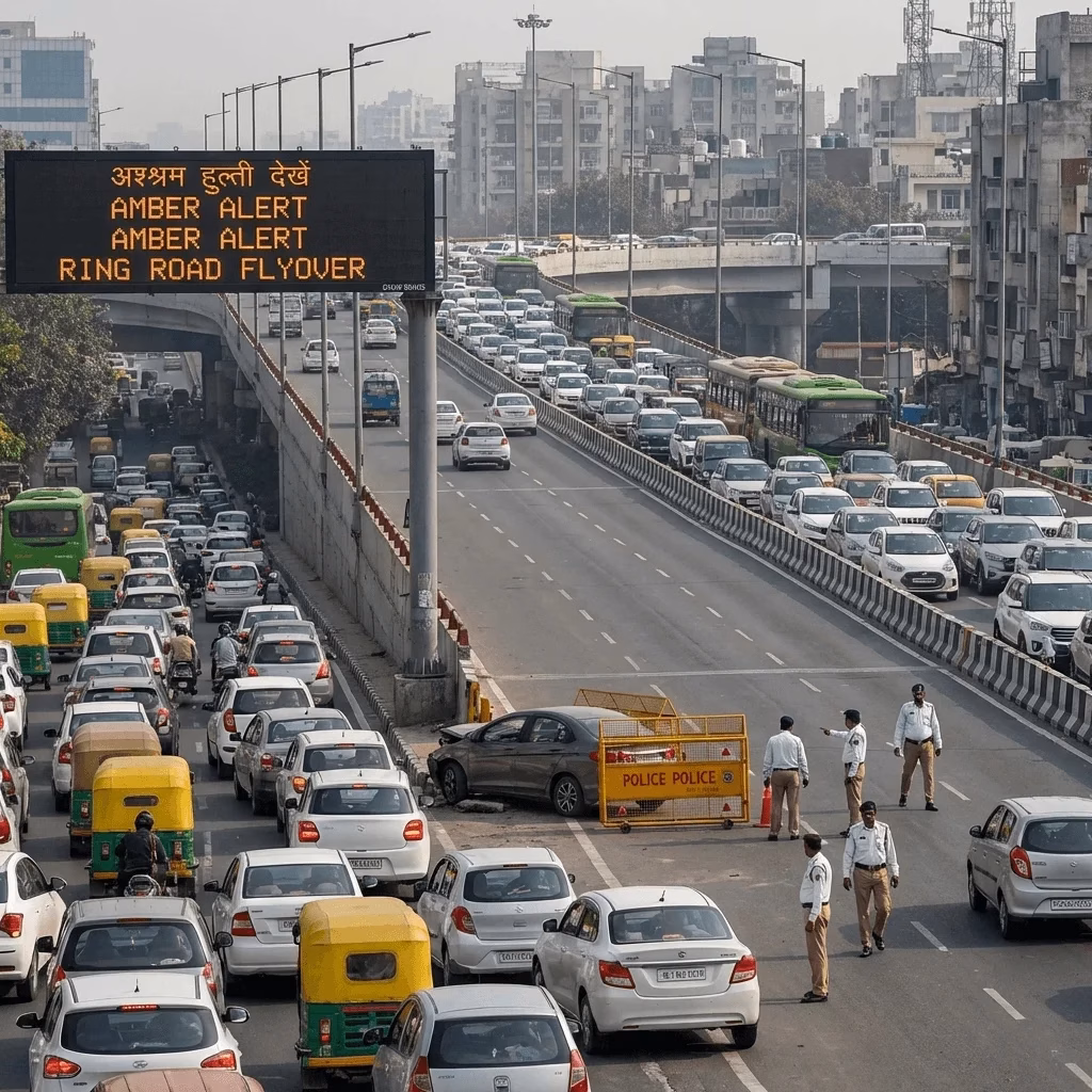 Delhi: दिल्ली के रिंग रोड पर स्थित आश्रम फ्लाईओवर के पास 8 अप्रैल 2026 को एक बड़ा सड़क हादसा हुआ है। इस दुर्घटना की वजह से पूरे इलाके में वाहनों की लंबी कतार लग गई है। दिल्ली ट्रैफिक पुलिस के अनुसार, एक लाइट गुड्स व्हीकल