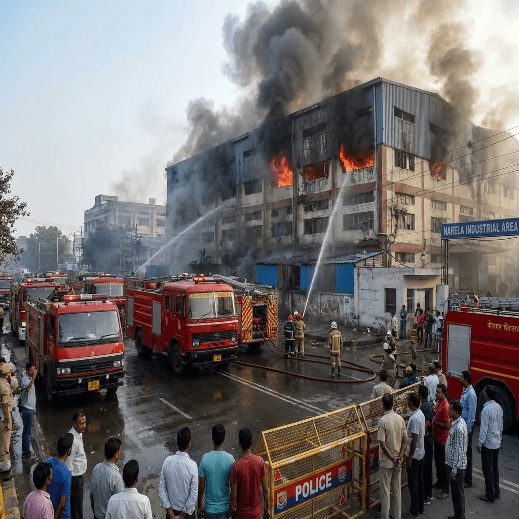 Delhi: बाहरी दिल्ली के Narela इंडस्ट्रियल एरिया में बुधवार सुबह एक फैक्ट्री में भीषण आग लग गई। आग इतनी तेज थी कि इसे ‘Category 6’ की आग बताया गया, जो काफी गंभीर स्तर की होती है। दिल्ली फायर सर्विस को सुबह 8 ब