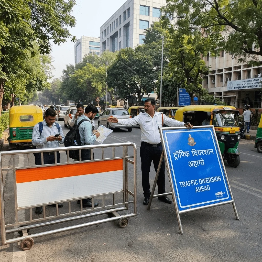 20 अप्रैल 2026 को सुबह 6 बजे से शाम 4 बजे तक DDU मार्ग और विष्णु दिगंबर मार्ग पर यातायात प्रभावित रहेगा। संस्कृत भारती कार्यालय का उद्घाटन सुबह 7:00 बजे होना है, जिसमें करीब 1500 लोगों के आने की उम्मीद है। इस वजह से ITO से मिंटो रोड तक DDU मार्ग के दोनों तरफ और विष्णु दिगंबर मार्ग पर जाम लग सकता है। पुलिस ने भारी वाहनों की आवाजाही को सीमित करने का भी फैसला लिया है।