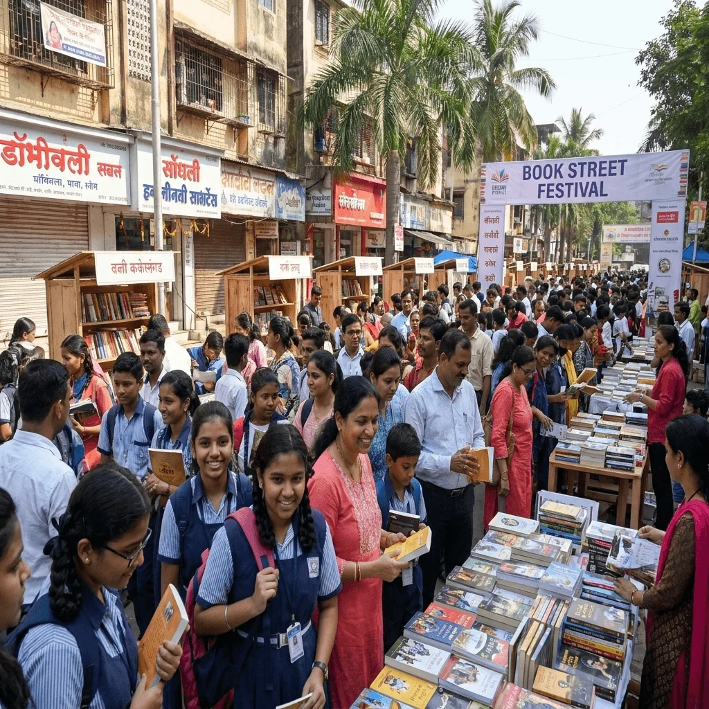 Maharashtra: कल्याण के डोंबिवली में रविवार को विश्व पुस्तक दिवस के मौके पर ‘Book Street Festival’ का आयोजन किया गया। इस साहित्यिक उत्सव में बड़ी संख्या में पाठक पहुंचे और किताबों का आनंद लिया। यह आयोजन सुबह 5 बजे से 10 बजे तक डोंबिवली ईस्ट के फाड़के रोड पर हुआ, ताकि लोग धूप से बच सकें और सुकून से किताबें देख सकें।