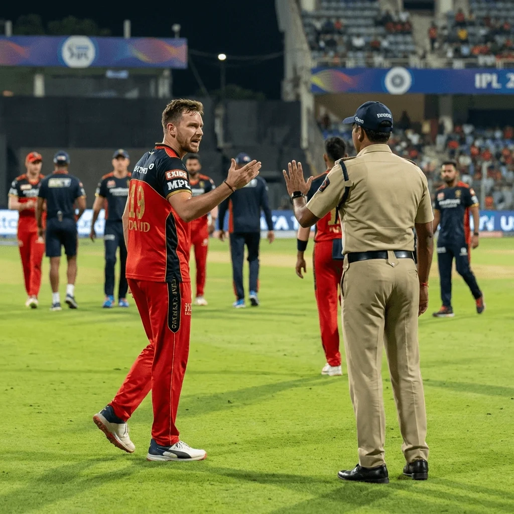Cricket : IPL 2026 में Royal Challengers Bengaluru के ऑलराउंडर Tim David मुश्किल में फंस गए हैं। मुंबई इंडियंस के खिलाफ मैच के दौरान अंपायर के निर्देशों का पालन न करने की वजह से उन पर जुर्माना लगाया गया है। मैच रेफरी ने