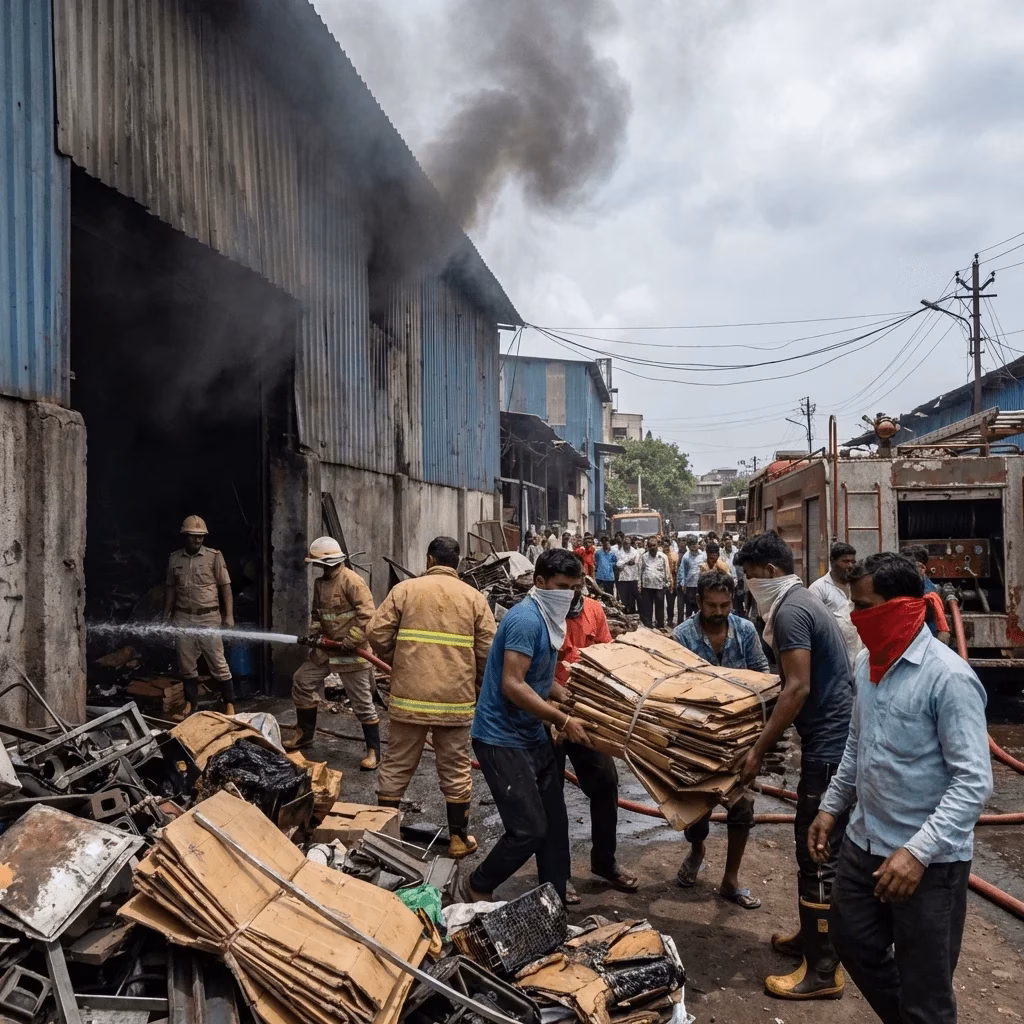 Maharashtra: भिवंडी के फातिमानगर इलाके में रविवार तड़के एक स्क्रैप गोदाम में भीषण आग लग गई। आग इतनी तेज थी कि देखते ही देखते पूरे गोदाम में लपटें फैल गईं, जिससे इलाके में हड़कंप मच गया। सूचना मिलते ही दमकल विभाग की गाड़ि