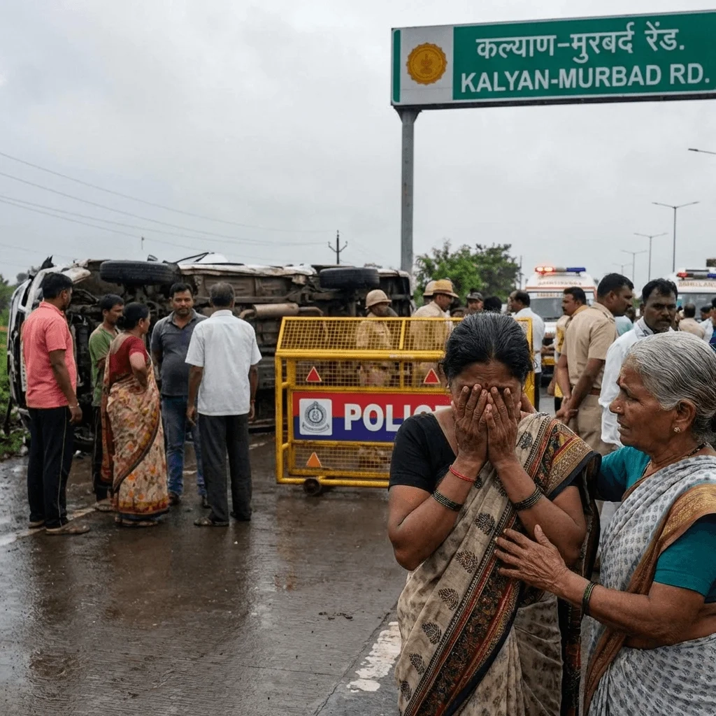 Maharashtra: कल्याण-मुरबाड हाईवे पर सोमवार सुबह एक भीषण सड़क हादसा हुआ जिसमें 11 लोगों की जान चली गई। यह हादसा गोवली गांव के पास रायता ब्रिज पर हुआ जब एक ओवरलोडेड टैक्सी और सीमेंट मिक्सर ट्रक के बीच आमने-सामने की टक्कर हुई। इस हादसे ने एक परिवार को पूरी तरह तबाह कर दिया है, जहां एक विधवा महिला ने अपने तीन बच्चों को खो दिया।