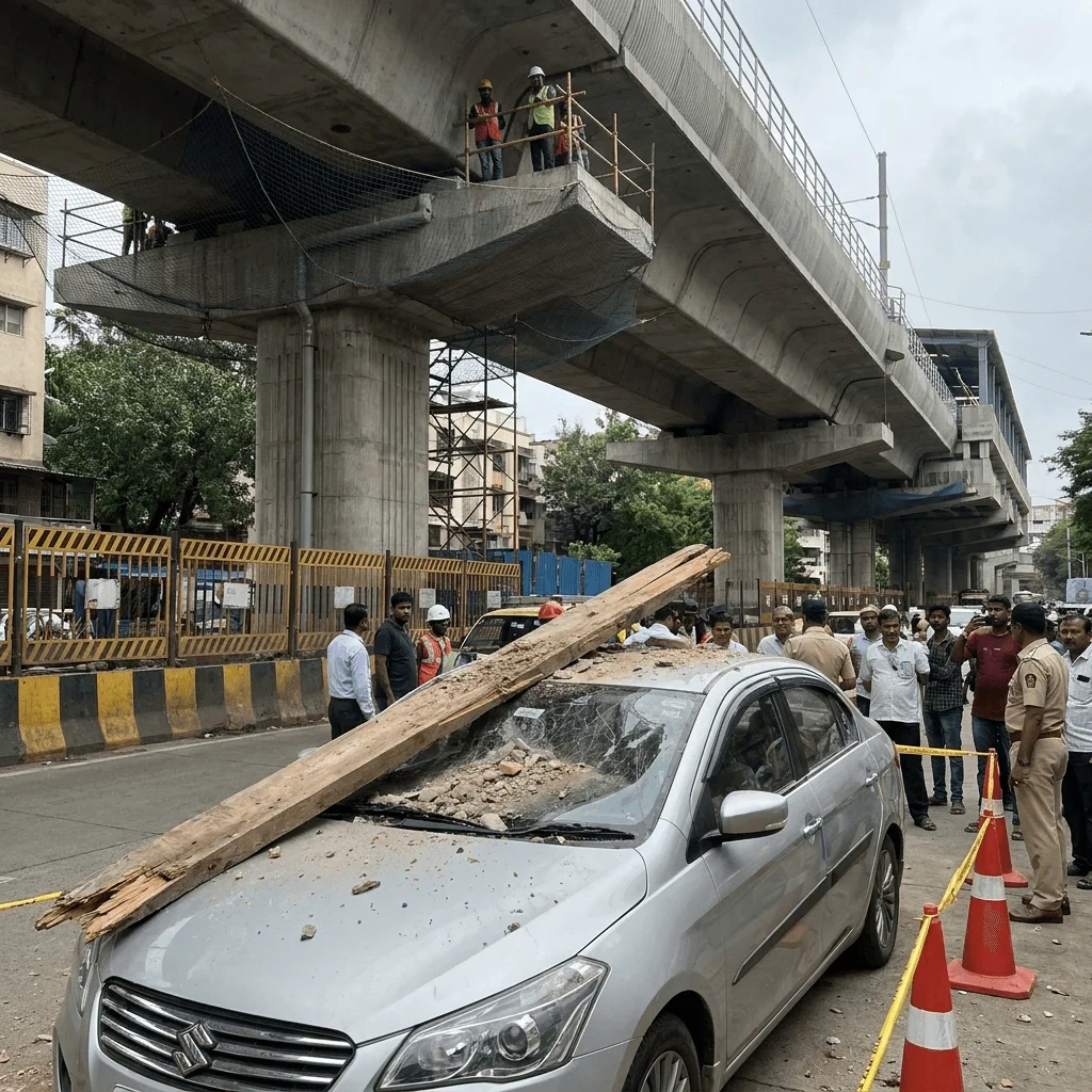 यह हादसा सोमवार, 27 अप्रैल 2026 को मुलुंड के LBS Road पर Metro Line 4 के निर्माण स्थल के पास हुआ।