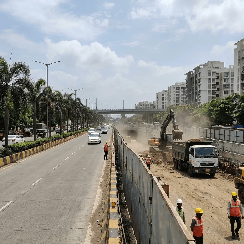 Maharashtra: Navi Mumbai Municipal Corporation (NMMC) ने Sanpada सेक्टर-19 में Palm Beach Road के नीचे टनल बनाने का काम तेज कर दिया है। इस प्रोजेक्ट के लिए खुदाई का काम केसर सॉलिटेयर बिल्डिंग के सामने शुरू हो चुका है। ठे