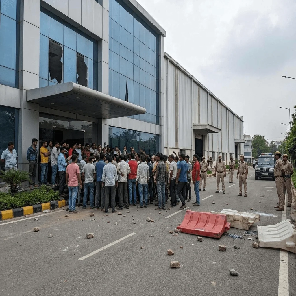 कंपनी के फैसिलिटी मैनेजर Vivek Saraswat ने बताया कि सोमवार सुबह करीब 100 से 150 लोगों की भीड़ वहां पहुंची और परिसर में पथराव शुरू कर दिया। भीड़ ने कंपनी के बाहर खड़ी गाड़ियों के शीशे तोड़ दिए और मुख्य गेट को तोड़कर अंदर घुसने की कोशिश की। बताया गया है कि मजदूरों के विरोध के कारण पिछले कुछ दिनों से कंपनी अस्थायी रूप से बंद थी।