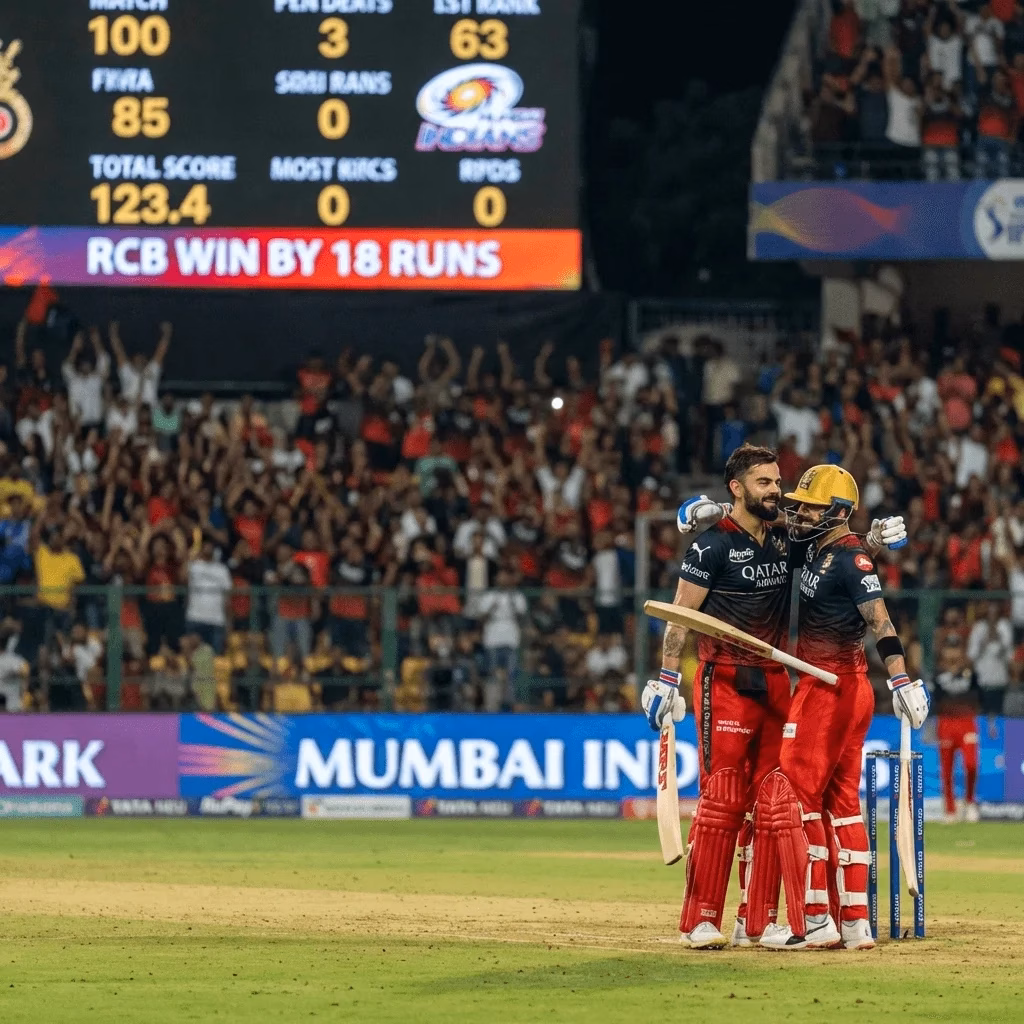 Maharashtra: वानखेड़े स्टेडियम में खेले गए एक हाई-प्रोफाइल मैच में Royal Challengers Bengaluru (RCB) ने Mumbai Indians (MI) को 18 रन से हरा दिया। रविवार, 12 अप्रैल 2026 को हुए इस मुकाबले में RCB ने पहले बल्लेबाजी करते हु