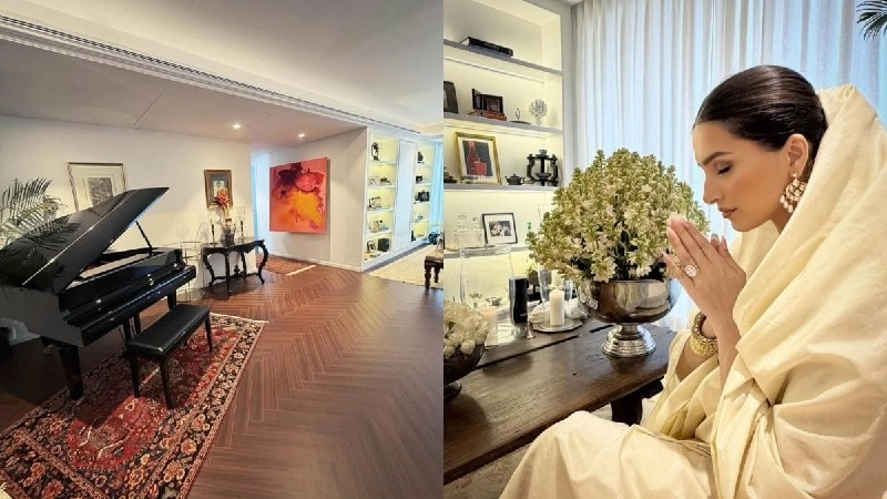 Tara Sutaria ने अपने घर को मॉडर्न स्टाइल के बजाय अपनी विरासत और यादों से जोड़ा है। घर में Parsi और English स्टाइल का मिला-जुला असर दिखता है। यहाँ सफेद दीवारें, लकड़ी का फर्श, वार्म लाइटिंग और एक विंटेज झूमर लगाया गया है। घर में एक ग्रैंड पियानो भी है और इसे इस तरह डिजाइन किया गया है कि यहाँ अक्सर डिनर पार्टीज आयोजित की जा सकें।