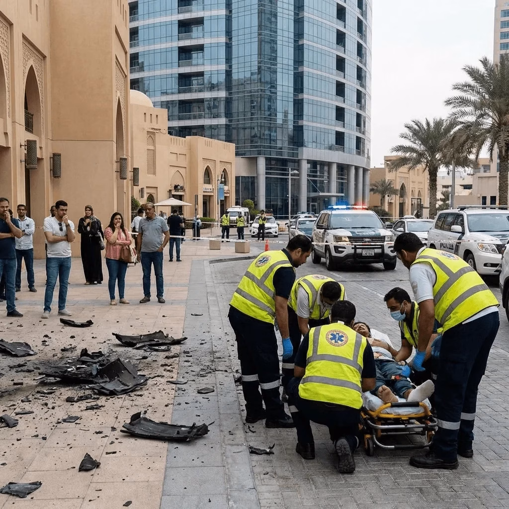 नेशनल इमरजेंसी क्राइसिस एंड डिजास्टर मैनेजमेंट अथॉरिटी (NCEMA) ने निवासियों की सुरक्षा के लिए तत्काल दिशा-निर्देश जारी किए। अधिकारियों ने लोगों को घरों के भीतर रहने और खिड़कियों से दूर रहने की सलाह दी। इसके अलावा लोगों को किसी भी प्रकार के मलबे को छूने या उसकी तस्वीरें लेने से मना किया गया। हालांकि बाद में स्थिति पर नियंत्रण पाने के बाद लोगों को सामान्य गतिविधियां फिर से शुरू करने की अनुमति दे दी गई।